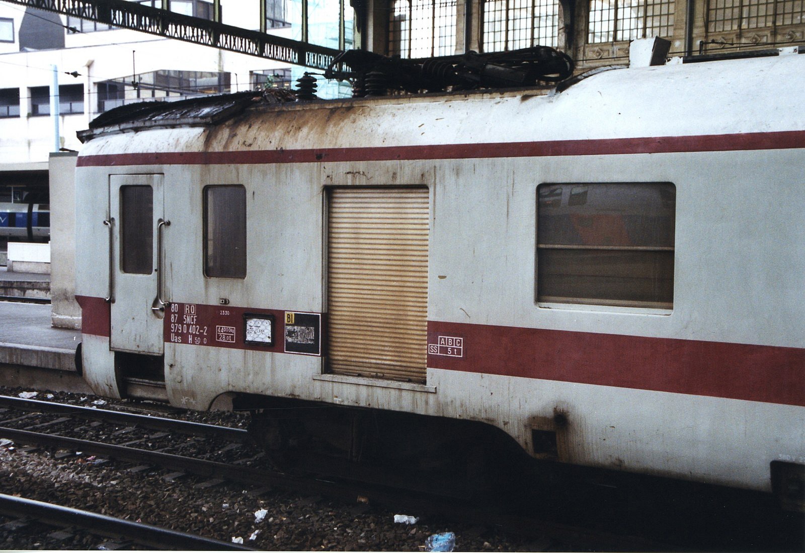 Voici quelques images de l'ex DEV AO devenue wagon graisseur de caténaire 80 87 979 0 402-2 RO, saisi en Gare de Lyon Novembre 2003.