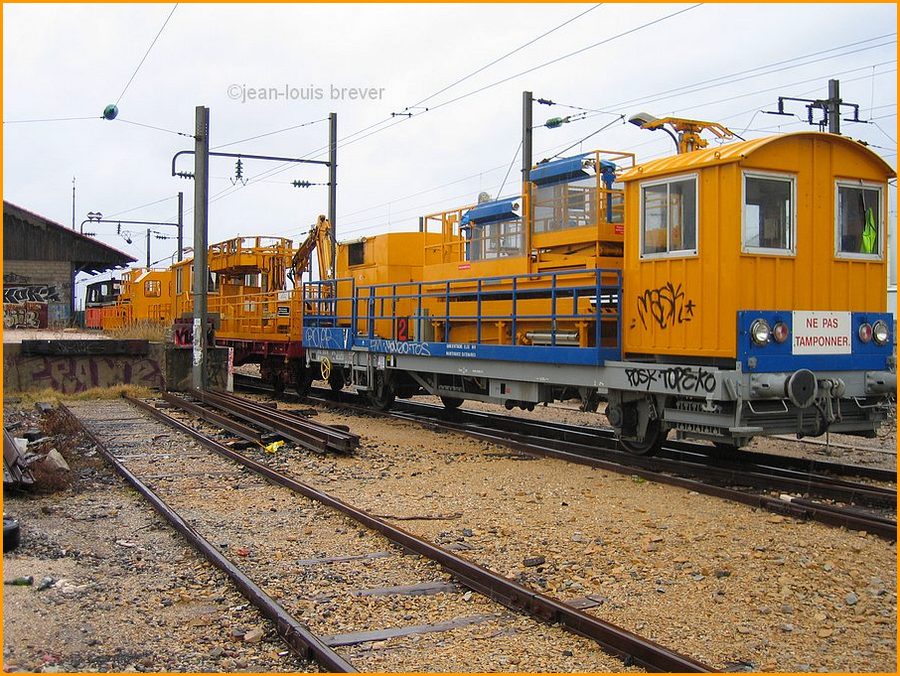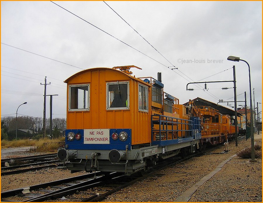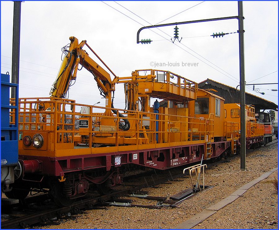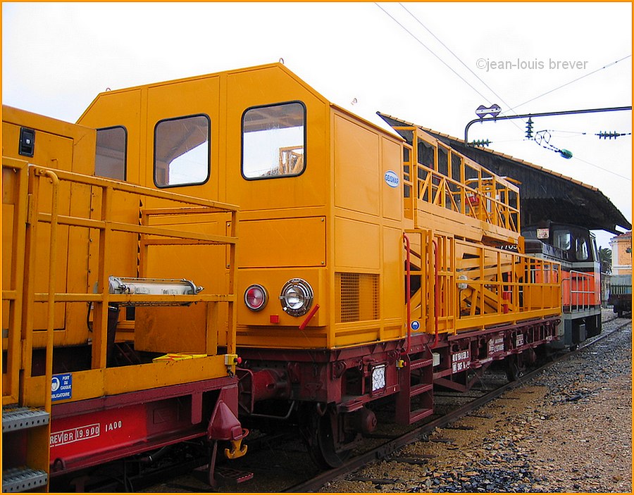 sous une pluie diluvienne, ce jour de septembre 2006, était stationné sur les voies de débord de la gare de La Pauline-Hyères, ce train de maintenance des caténaires; ce qui ne m'a pas empêché dans faire des clichés que je vous présente dans leur totalité.