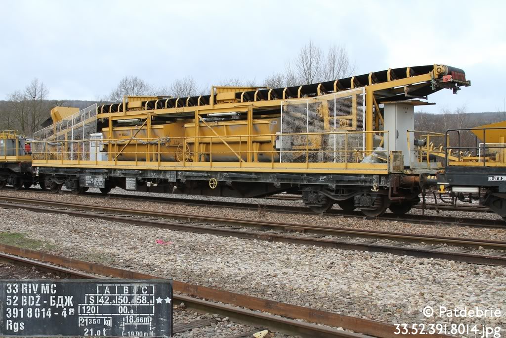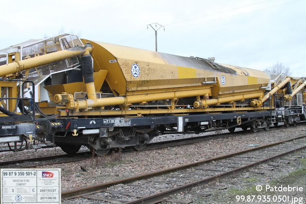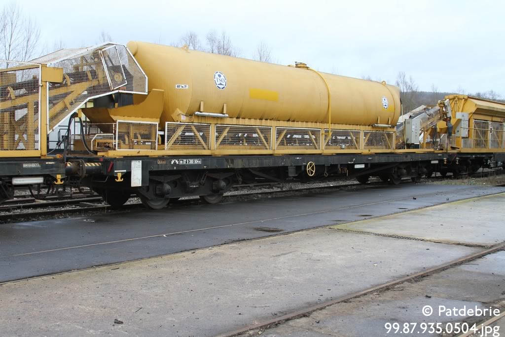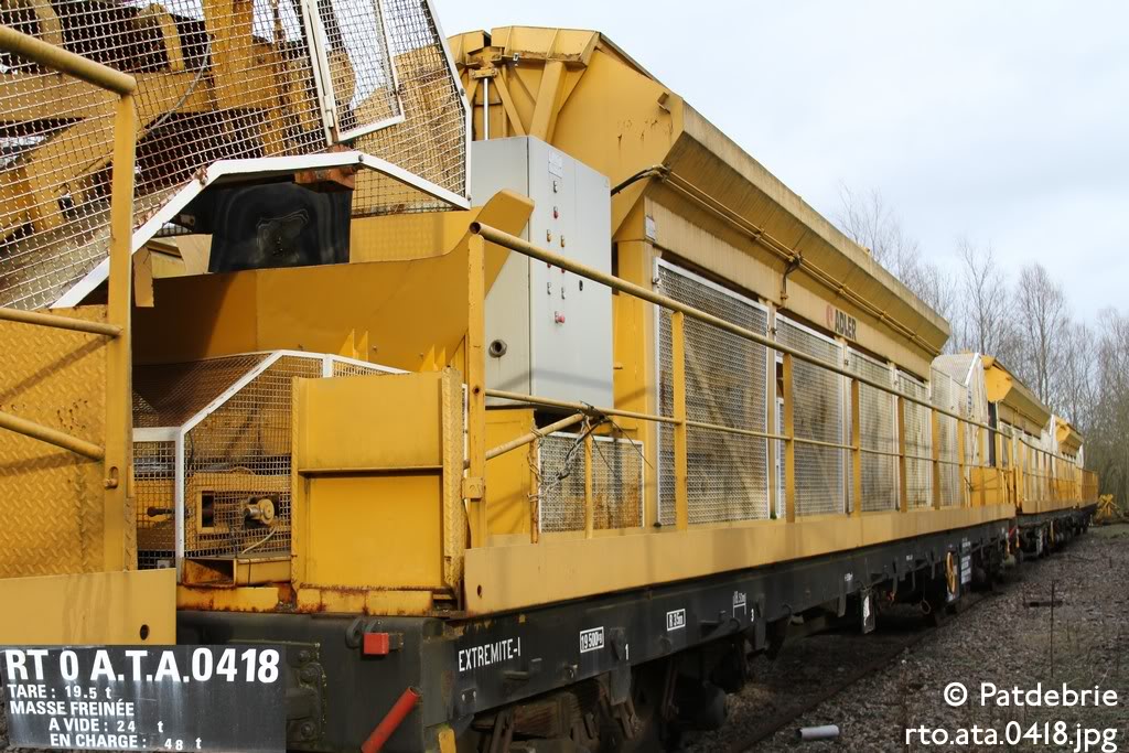 Il s'agit de certains éléments du train béton TSO qui à servit pour le betonnage des voies du Tunnel sous la Manche coté anglais. Il était composé d'environ 20 wagons (ciments, énergie, malaxeur, agrégats, eau). Depuis il a été modifié pour effectuer de la pose de caténaires. L'on retrouve une dizaine de ces wagons chez TSO Caténaires, le reste est encore estampié TSO et ils ont de "trés vieux agréments" car non utilisés depuis.