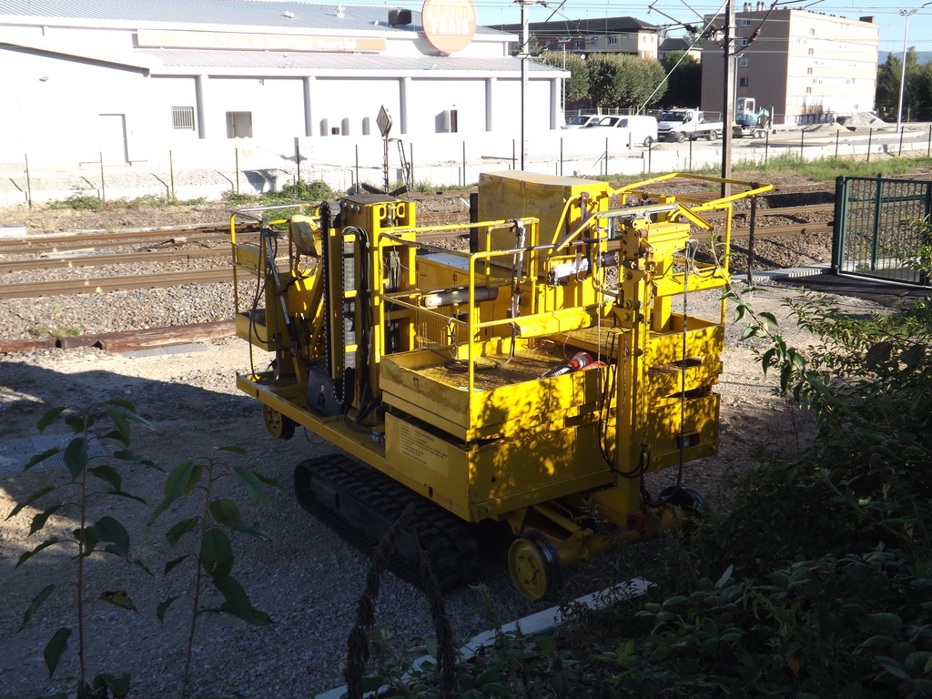 Voici une photo d'un VRRIP à chenilles ELAN 00B - ELA.06.xxx.xx non identifié en gare de Montrichard pour des travaux sur la ligne