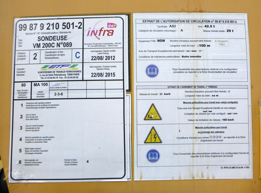 Voici une Sondeuse de Type VM200C de MATISA n°089 de 1988 - 99 87 9 210 501-2 ETF parc n°5200024