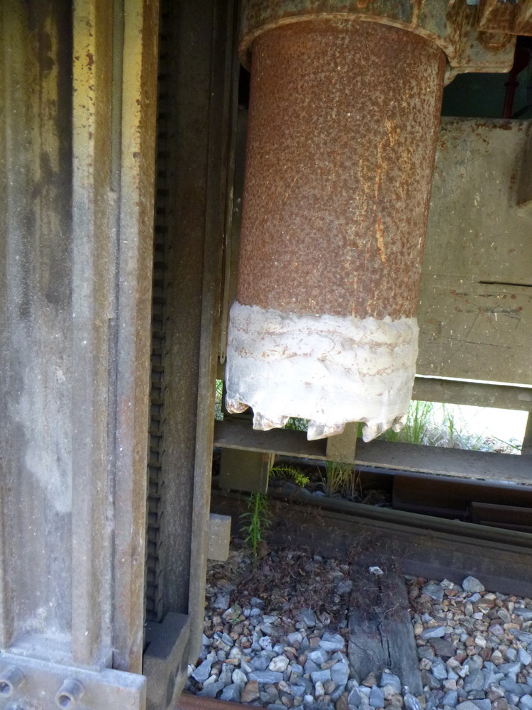 Sur les photos ci dessus il est intéressant de voir qu'il y a 3 carottiers qui sondent la voie sur laquelle circule la machine : 1 au centre et 1 à chaque fil de rail extérieur.
