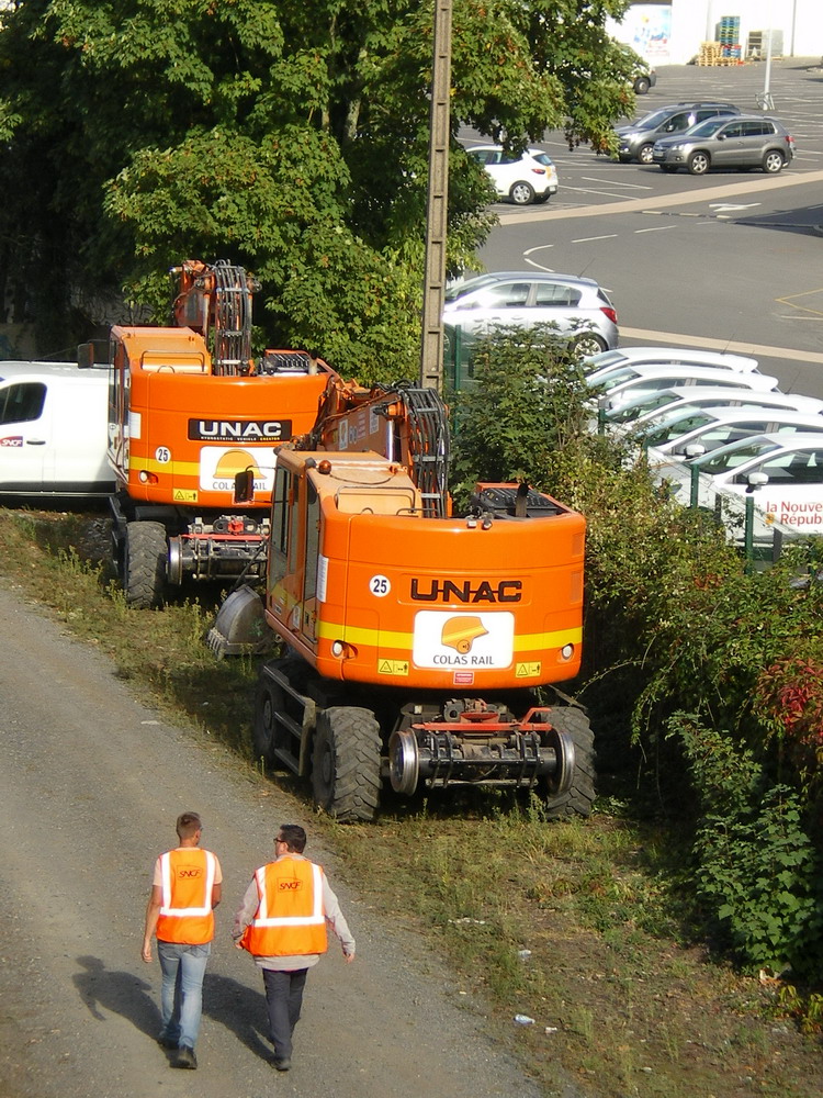 et de l'autre côté du pont en direction de SPDC les deux Pelles UNAC 22 TRR de Colas Rail