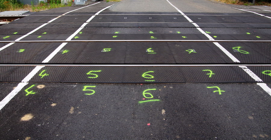 et maintenant quelques photos du mercredi 11 juillet 2018 au PN de la gare de Rosières-en-Santerre avec le nouveau marquage sur la voie 2