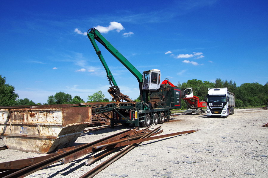 Nous exploitons le 4ème break depuis 2012. Grâce à l'arrivée des brise-roches que nous avons conçus, le traitement des rails a radicalement changé. Auparavant, les rails étaient découpés pièce par pièce avec une torche de coupe. Cependant, cela prend beaucoup de temps et nécessite beaucoup de travail. En outre, un tonnage élevé n'est pas atteint ici. D'un autre côté, le brise-roche fait beaucoup de tonnage en peu de temps et demande beaucoup moins de travail. Le brise-roche traite les voies ferrées jusqu'à 18 mètres (provenant d'une section ferroviaire).