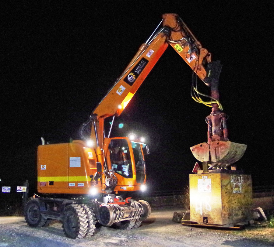 la Pelle Rail route UNAC 22 TRR UP2 n°EY200116 - Colas Rail - UNAC 3 - D1003087 pour les travaux nuit du 24 au 25 juillet 2018 au niveau des Ponts de Bray à Jussy (02)