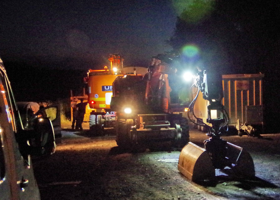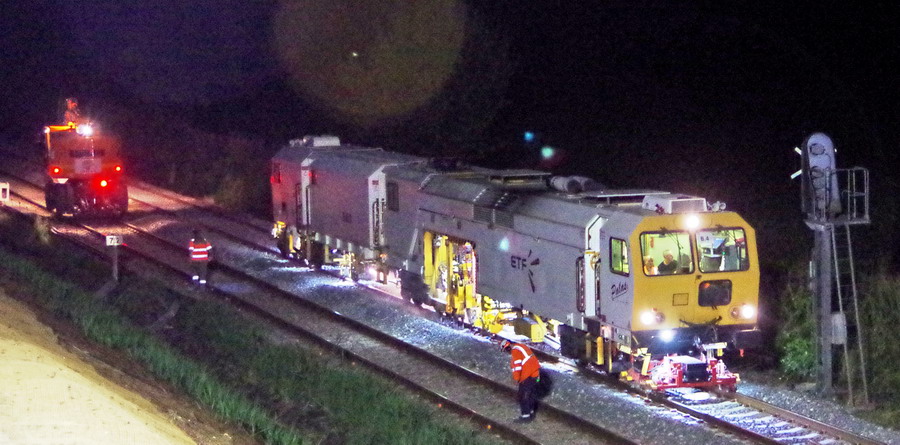 nuit du 26 au 27 juillet 2018 avec le travail pour l'installation des caniveaux par Colas Rail au niveau des ponts de Bray à la bifurcation de Jussy