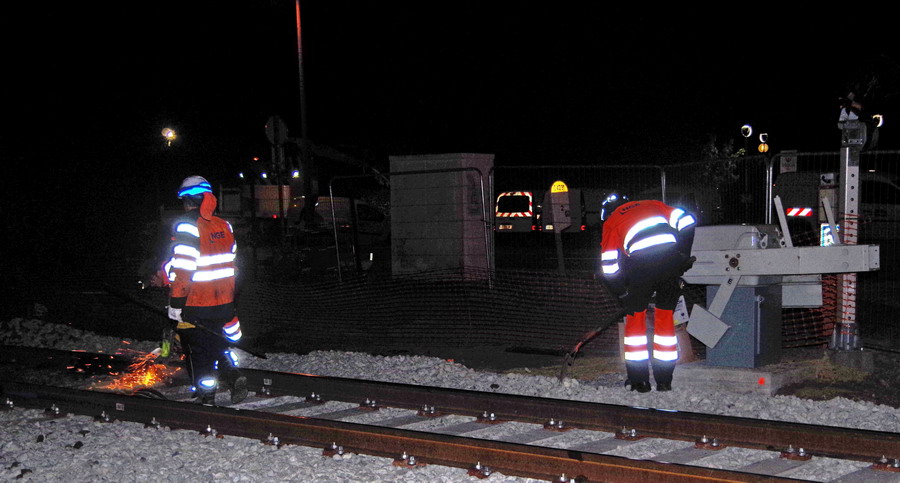 avec une nouvelle séance de découpe avec une tronçonneuse du rail au PN 58 à Chauny nuit du 25 au 26-04-2019