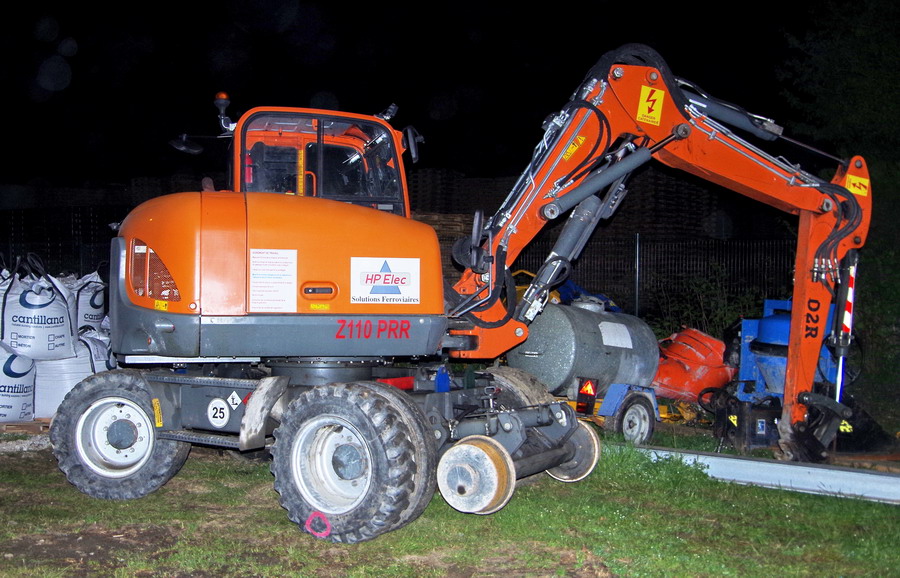 Pelle Rail route D2R Z110 PRR n°WNCE0606LPAL00303 série C 221 HP Elec pour les travaux au niveau du PN 58 à Chauny