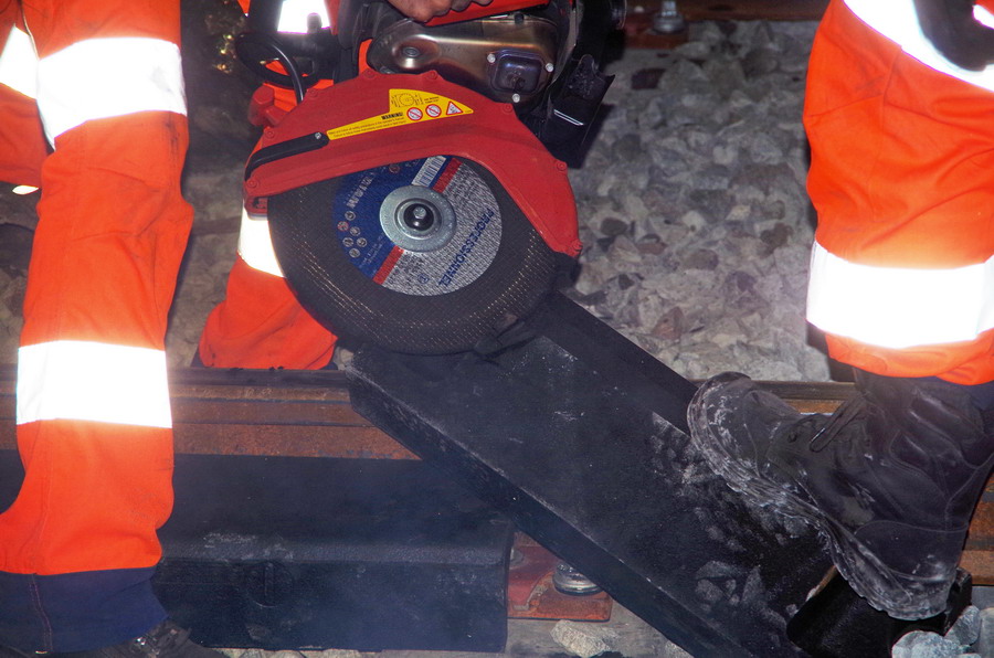 sciage des pièces compensatrices pour les dalles STRAIL pour le PN 58 à Chauny nuit du 29 au 30-04-2019