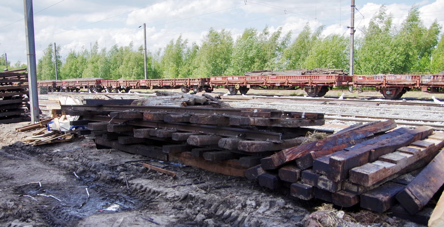 le stock des coupons de rail et des traverses usagées sur la base de travaux à Somain le 15-06-2019