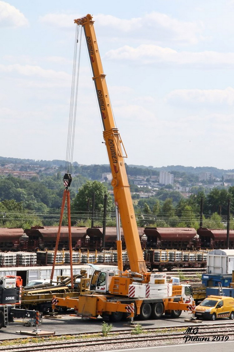Voici quelques photos de Michel Guyonnaud le 16 juillet 2019 avec la suite du levage des tapis roulants pour la rame de wagons