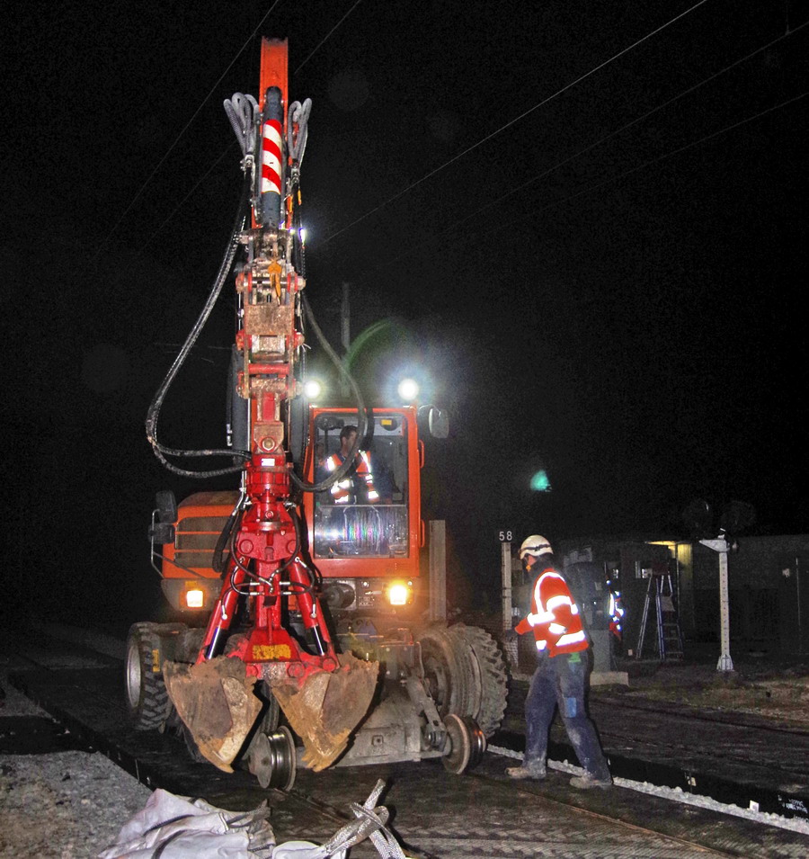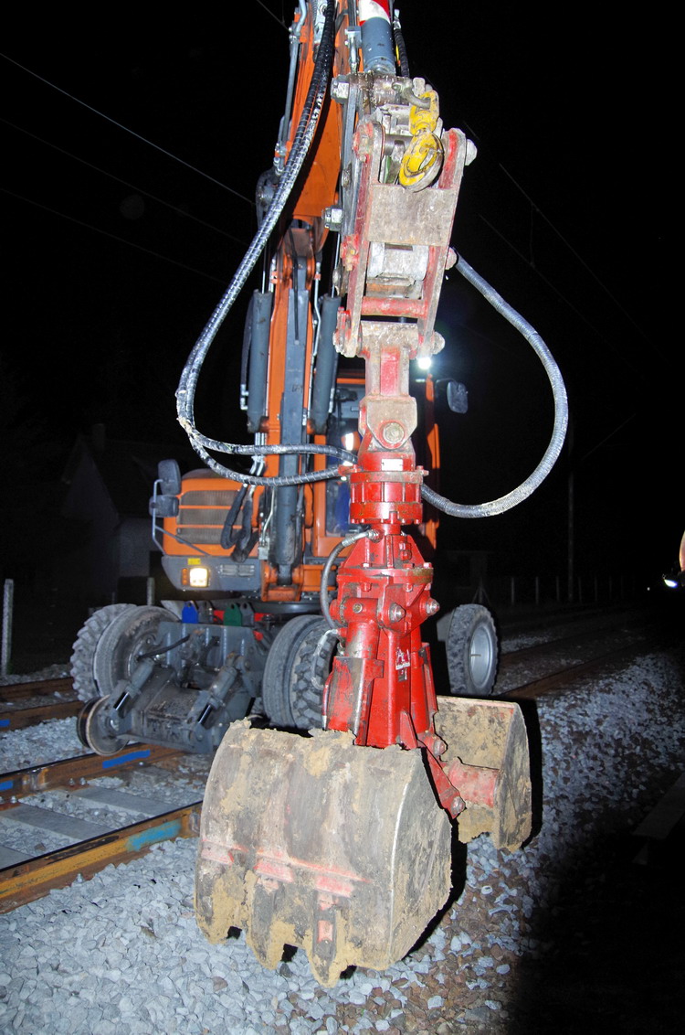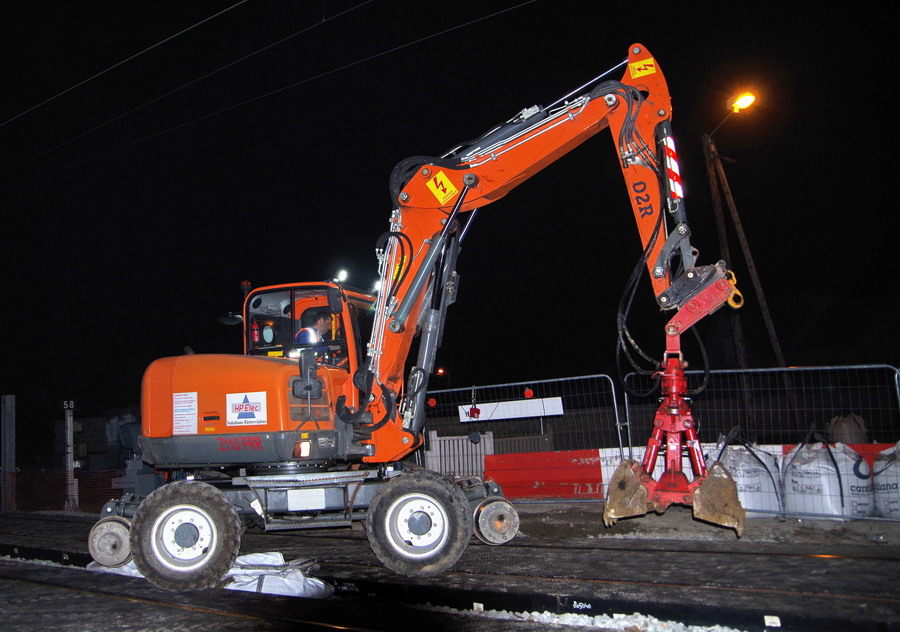 présence de la Pelle Rail Route D2R Z110 PRR n°WNCE0606LPAL00303 pour la requalification du PN 58 à Chauny (02)