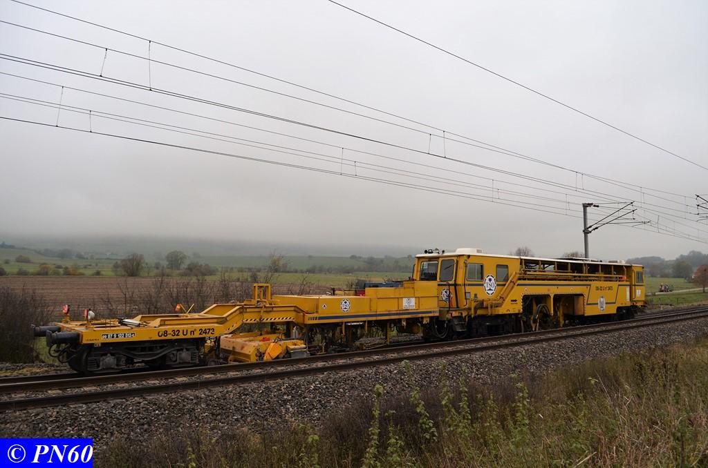 Poursuivant notre reportage photo, nous quittons le train de chantier poussé par la G.1206 99 87 9 181 537-1 de la Dijonnaise de Voies Ferrées. A l'arrière à quelques mètres suit la bourreuse de ligne TSO type 08-32 U n° 99 87 9 122 512-6 2473 et plusieurs ouvriers.