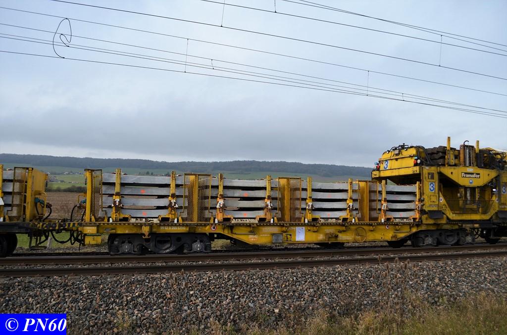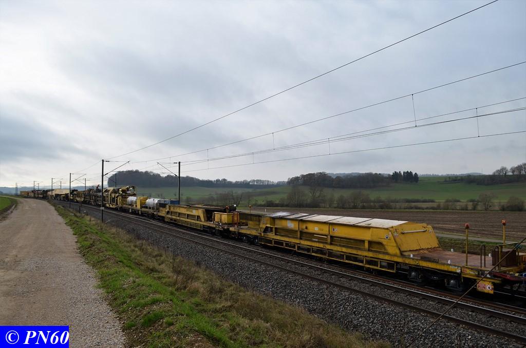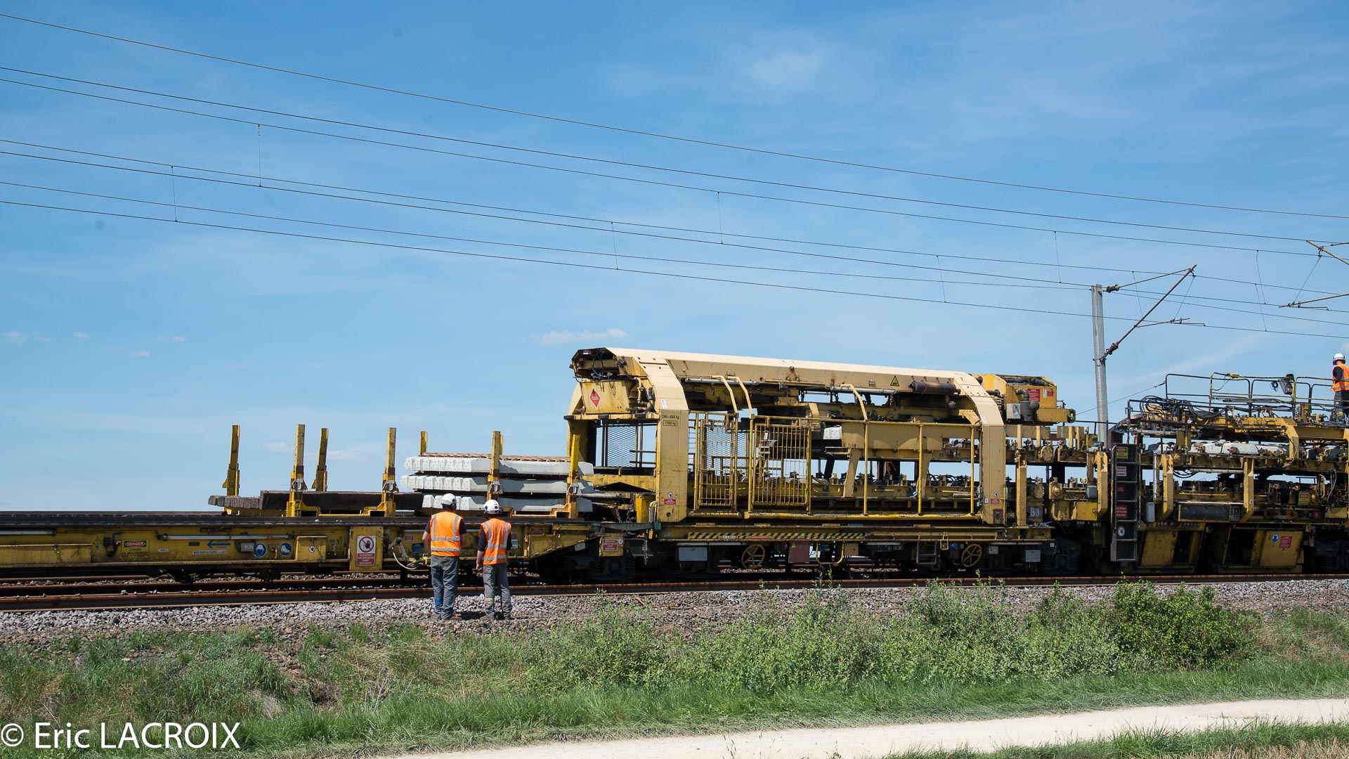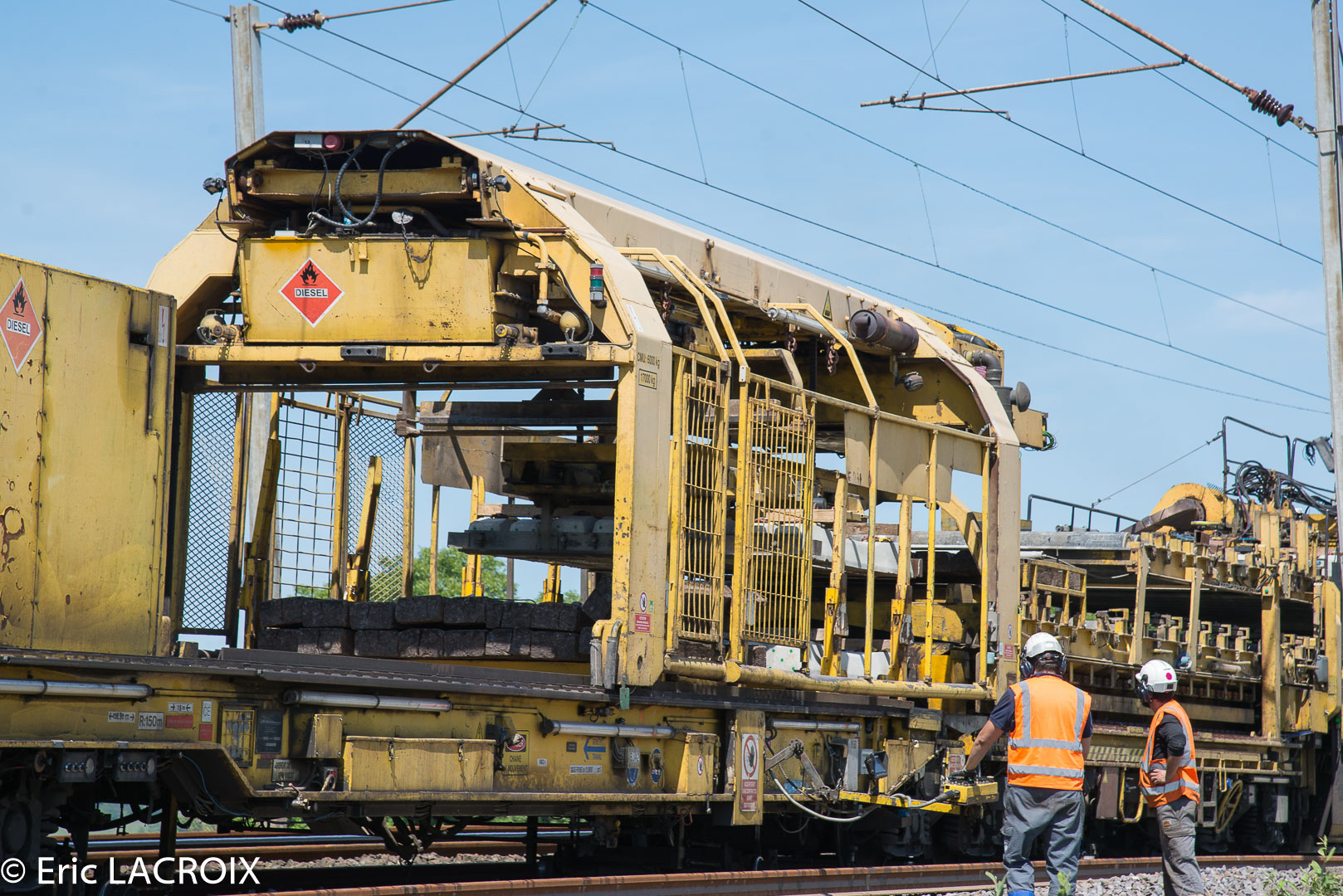 Train GIPERAIL TSV 21 GP - 99 87 9 311 502-8 et son système d'approvisionnement des traverses.