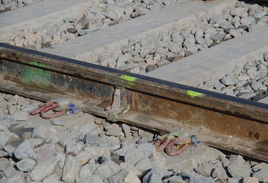 Mise en place des Chevalets de Réglage railtech de la série CR permettent d’aligner au mieux les rails avant la réalisation d’une soudure aluminothermique.