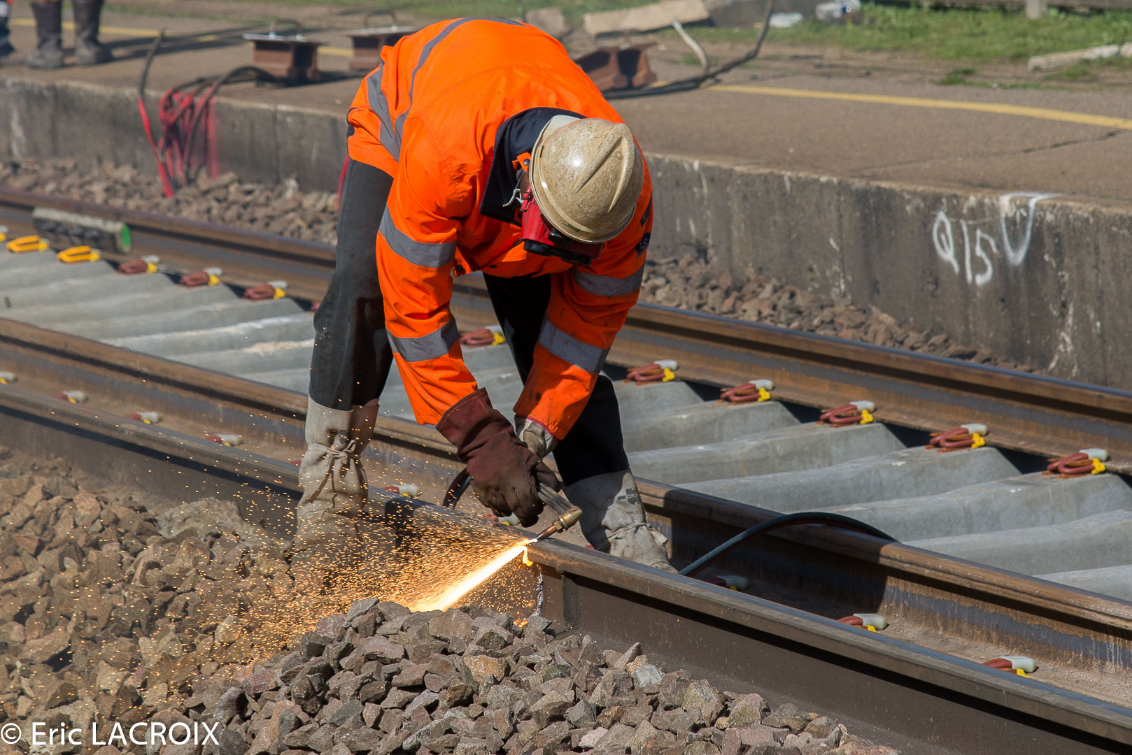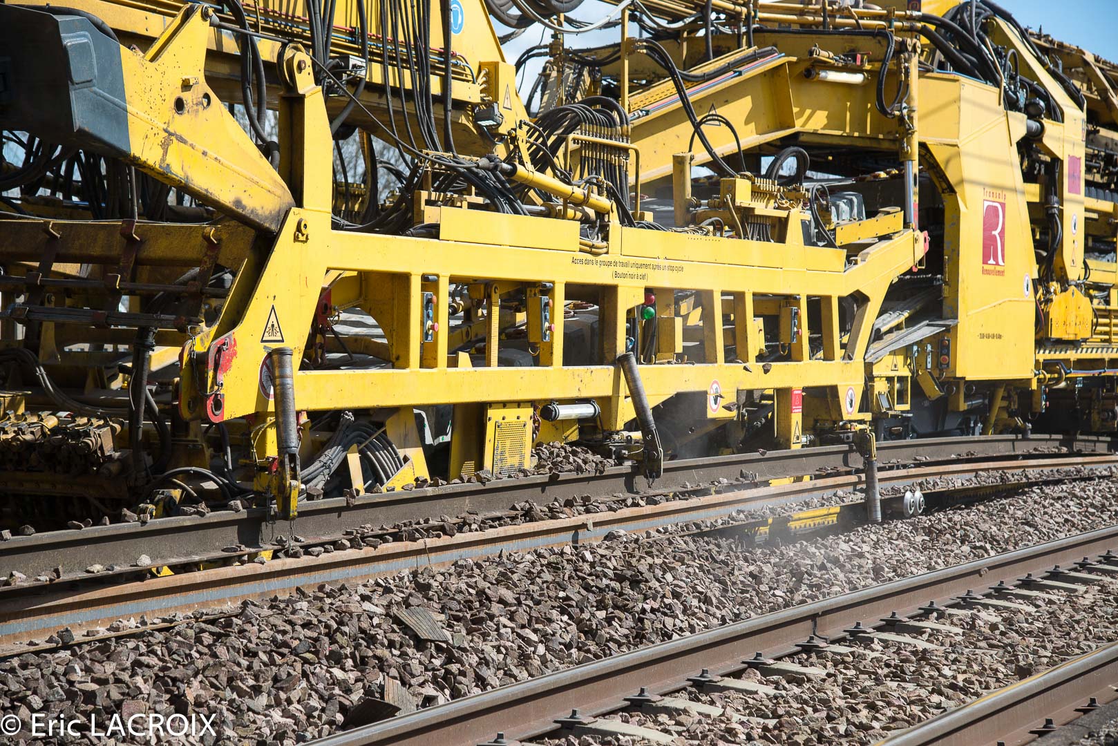 Derrière le train de renouvellement, la découpe et le ramassage des rails usés...