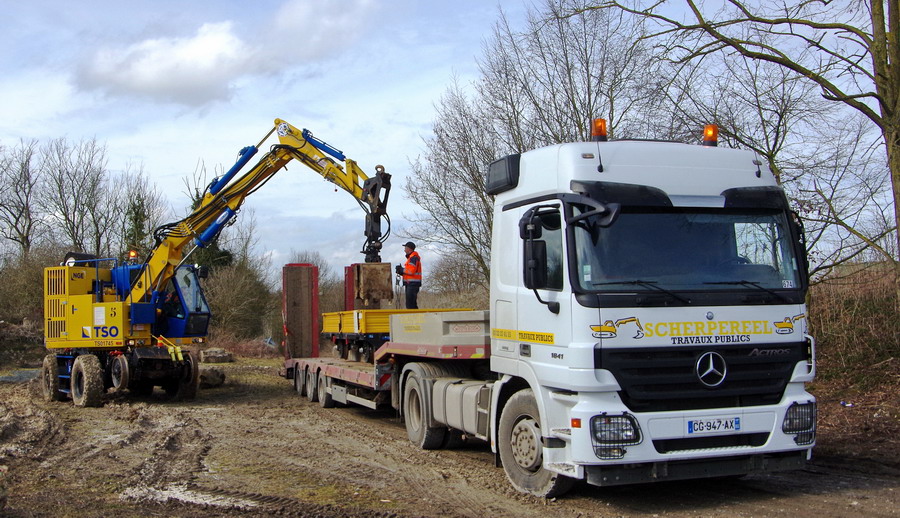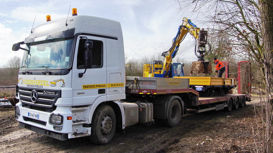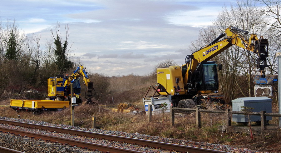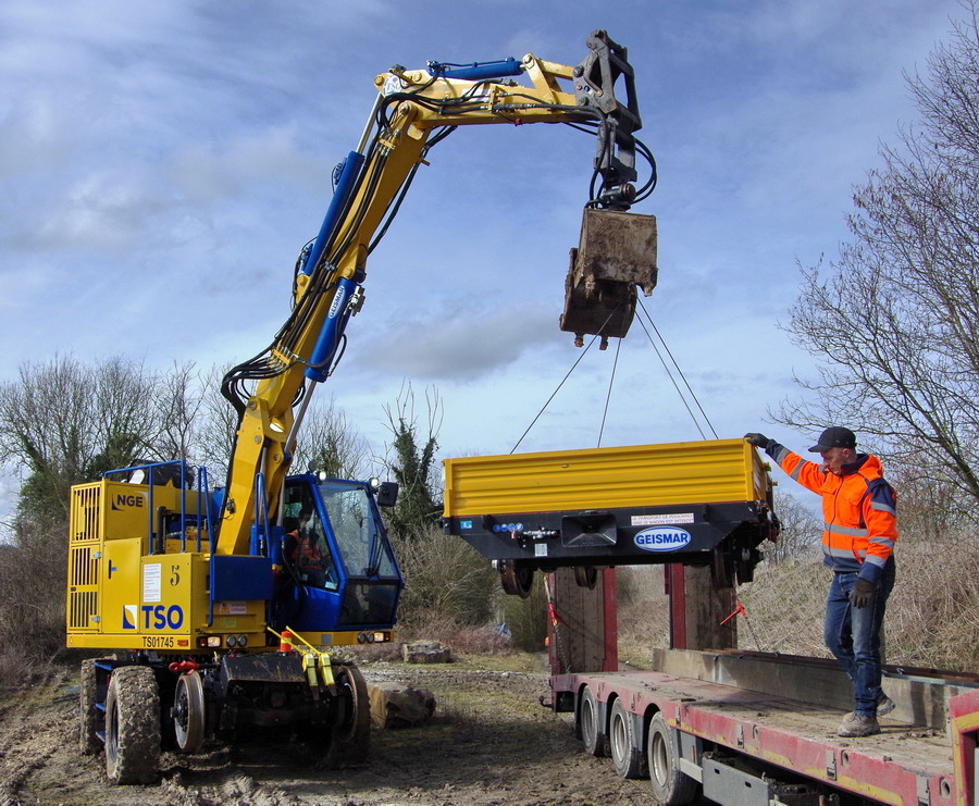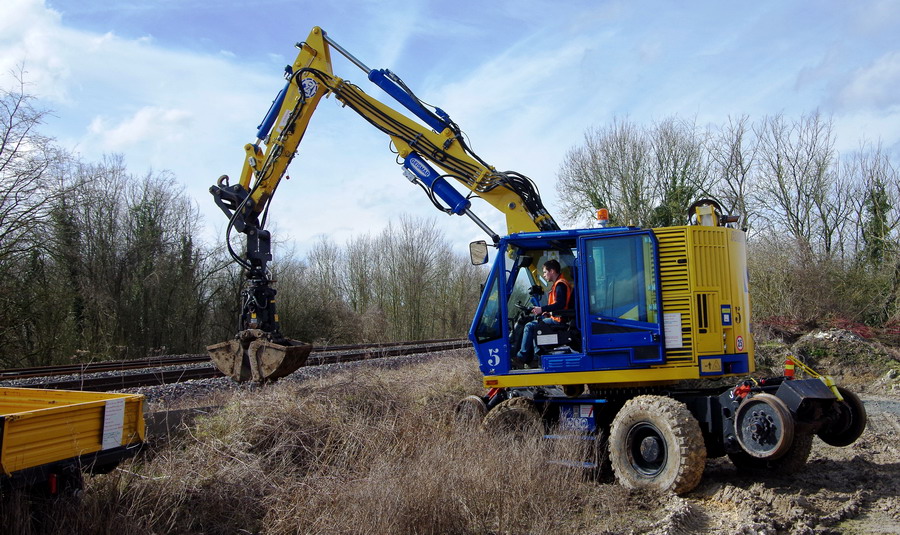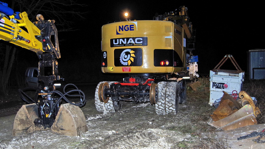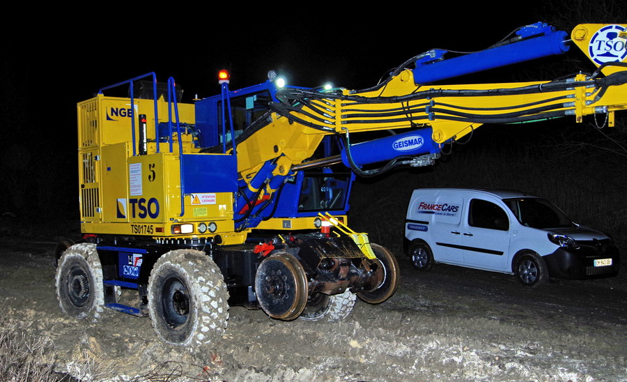 il y a deux pelles Rail route présentent pour le chantier avec les équipe de TSO et Offroy du groupe NGE