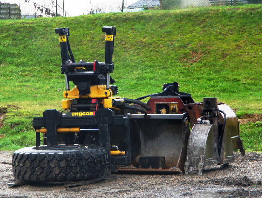 Origny-Sainte-Benoîte au niveau du N°4 par une équipe de Colas Rail avec une Pelle Rail route ACX 23 RR N°ACW23RRA2P180014 - 2018
