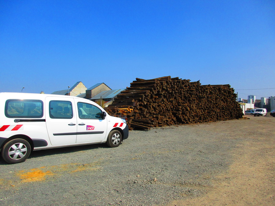 Le stock de traverses usagées grossi avec l'avancement du chantier :