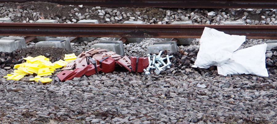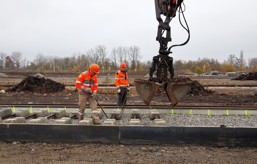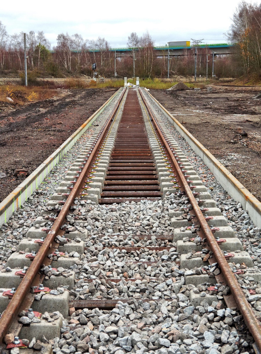 la nouvelle voie avec des traverses bibloc neuves sur le site de travaux de Longueau le 26-11-2018