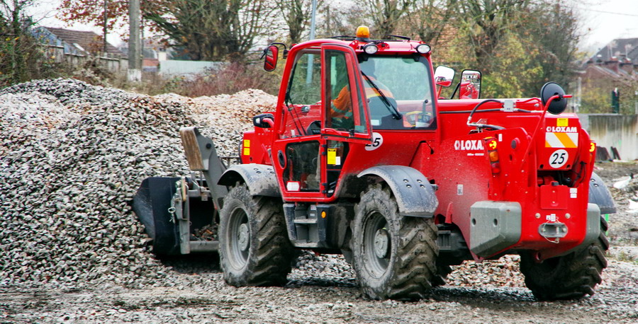 Chargeur LOXAM en location pour le ballast sur le site de travaux de Longueau le 26-11-2018