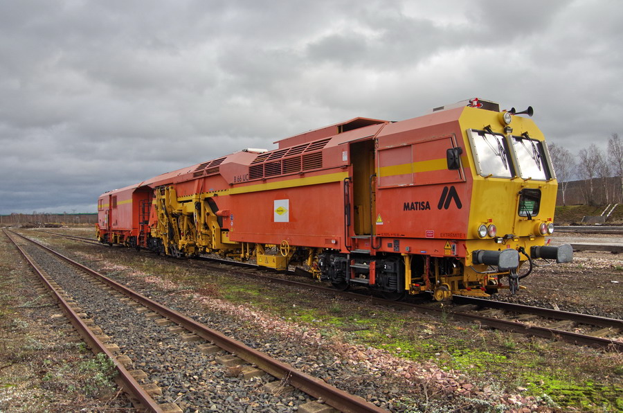 présence de la Bourreuse B66 UC Matisa n°6604 -99 87 9 124 532-2 Colas Rail sur la base de travaux arrière à Longueau le 07-12-2018