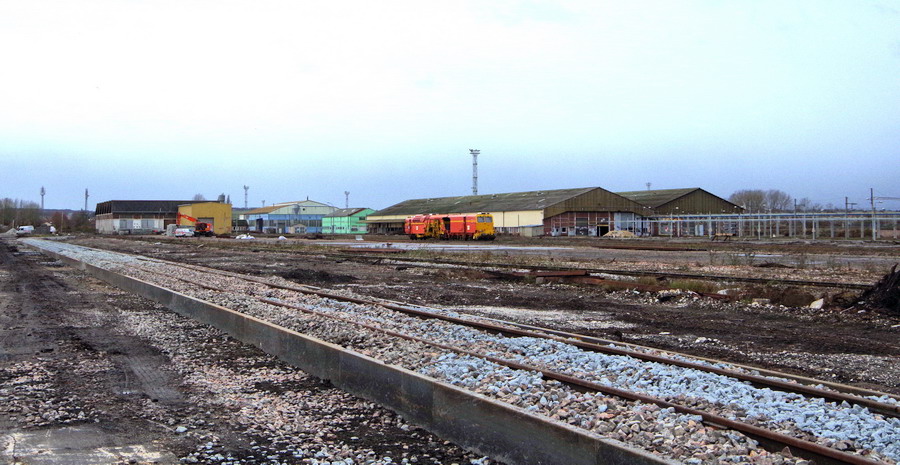 vue sur la basse de travaux arrière de Longueau le 07-12-2018 avec la B66 UC n°6604 de Colas Rail