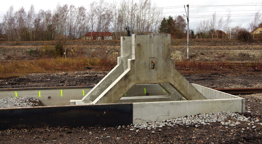 Traverses bi-blocs en béton armé sur la base de travaux arrière à Longueau le 07-12-2018