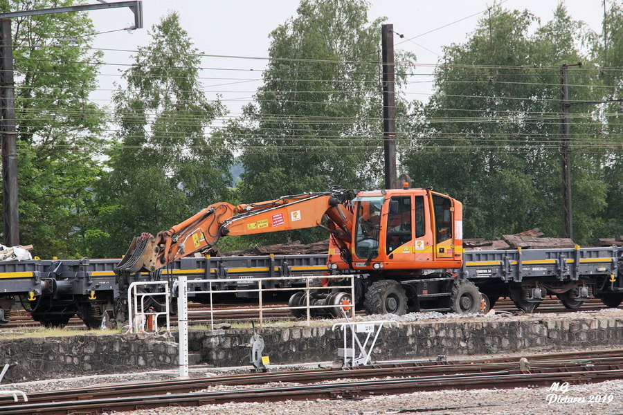 utilisation de la Pelle Rail route UNAC 22 TRR Colas Rail D1002900 sur la nouvelle base arrière du Puy-Imbert le 23-05-2019