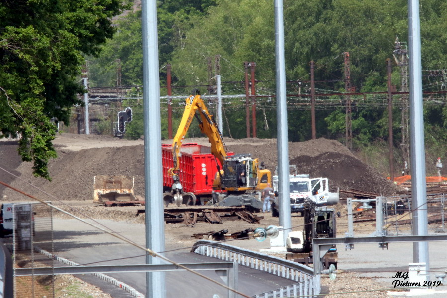 Vue des travaux sur la nouvelle base arrière de l'ex triage du Puy-Imbert le 20-05-2019
