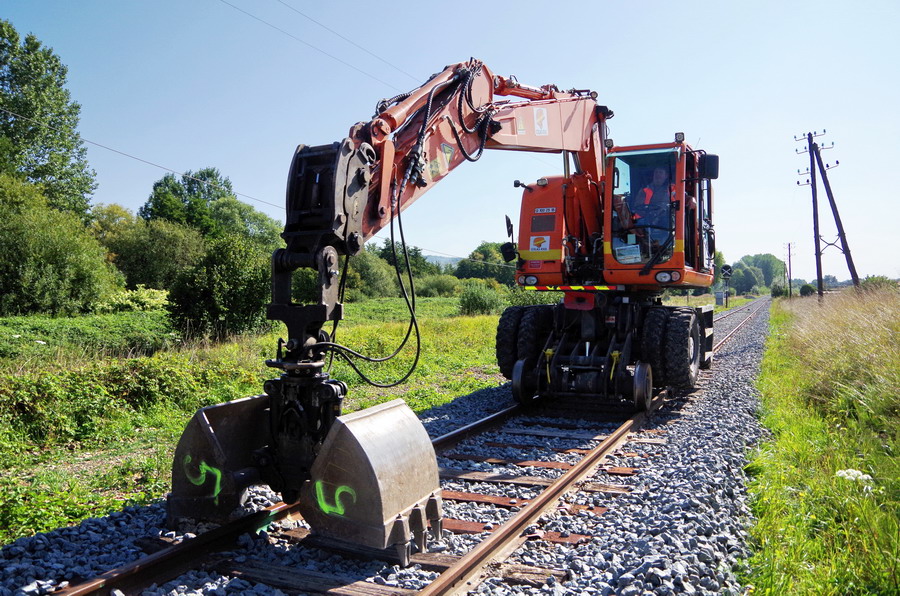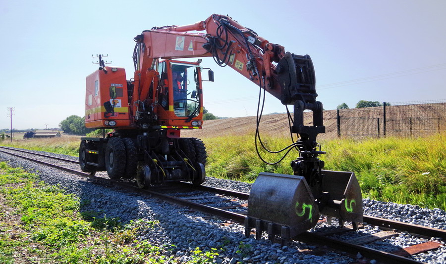 présence de la Pelle Rail route UNAC 22TRR n°CATM315DAJ5B00350 série W042 de Colas Rail D100 25 15