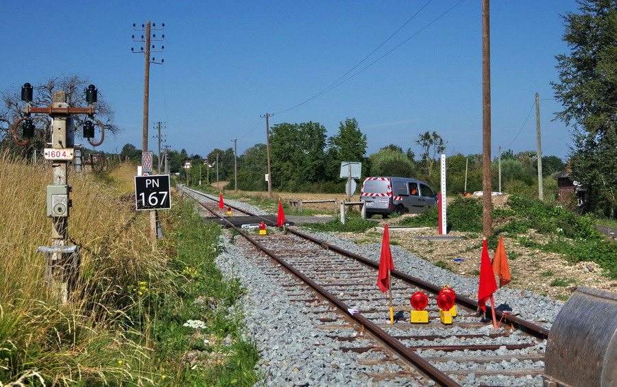 Nous sommes maintenant au PN n°118 à Quicampoix-Fleury PK 133+608 et l'entrée du chantier PRS n°8