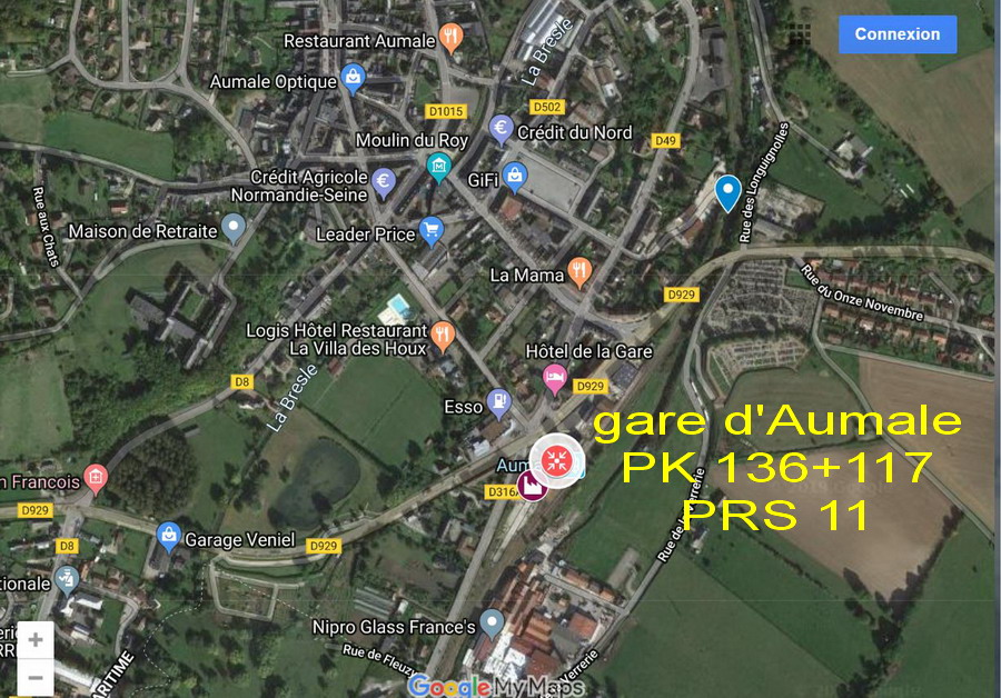 Gare d'Aumale (76) au PK 136+117 et l'entrée pour le chantier PRS n°11