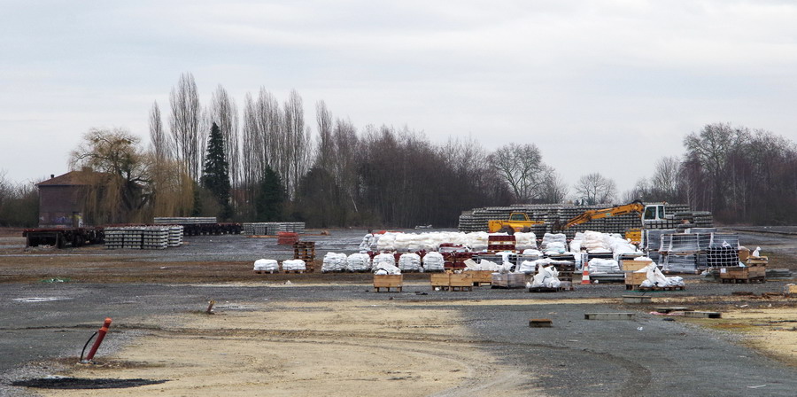 pour la préparation du chantier de pose des berlinoises, plaques de béton pour éviter les coulées de terre ou de boue