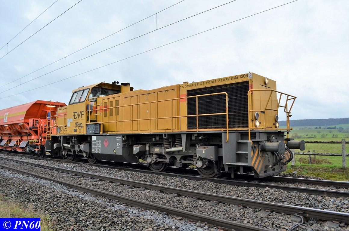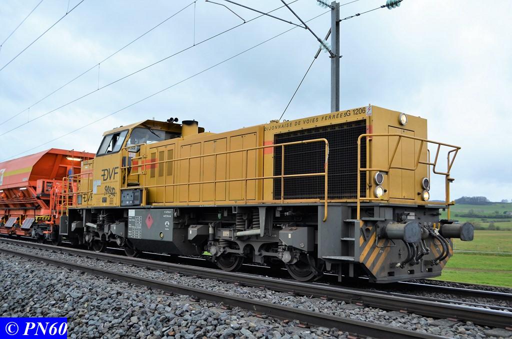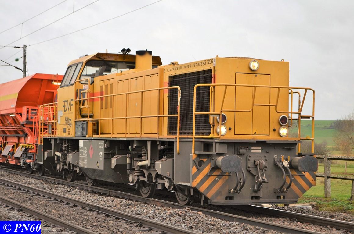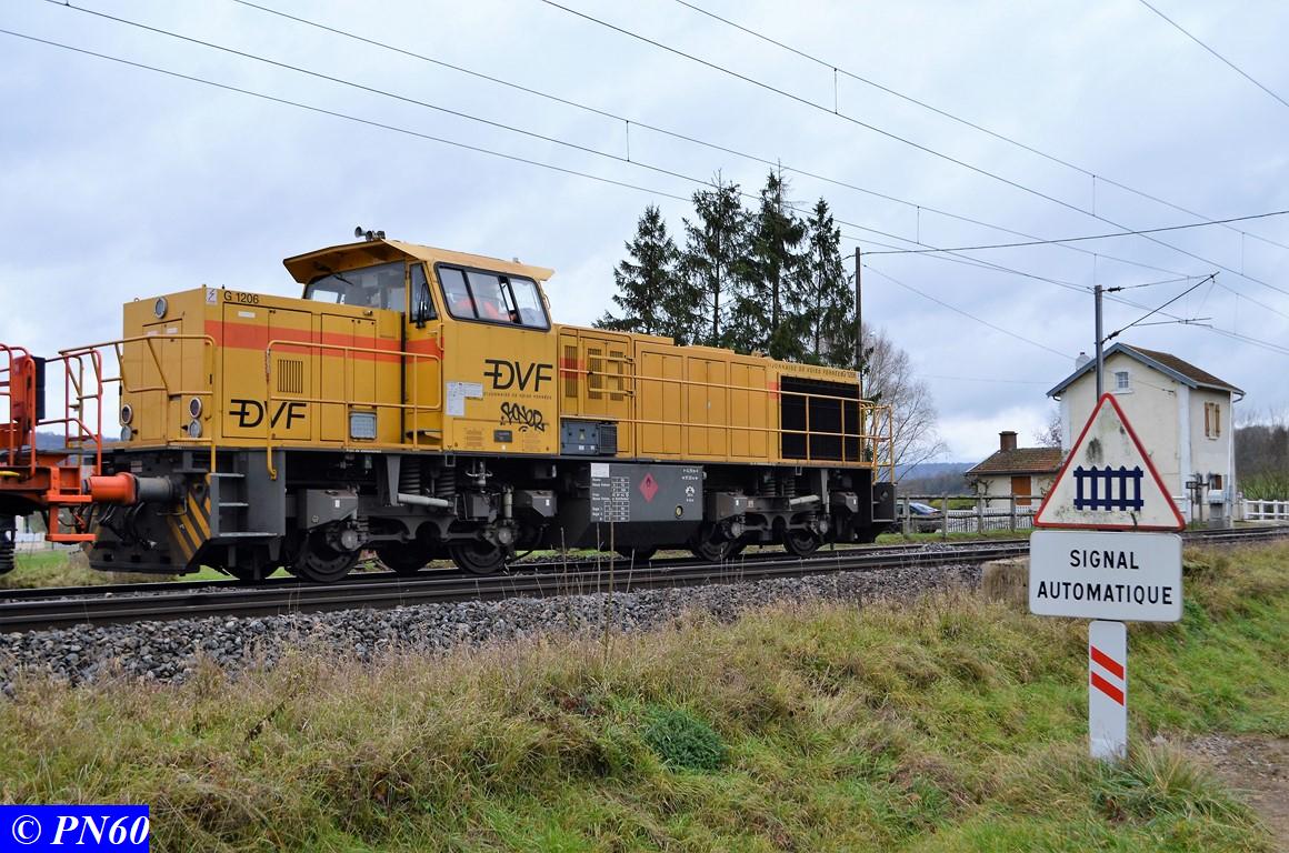 Suite des photos du 24 novembre 2017 et du train de ballast tracté par la G.1206 n° 99 87 9 181 520-7 de la Dijonnaise de Voies Ferrées et poussé par la G.1206 n° 92 80 1275822-5D propriété du loueur Alpha Trains apparemment.