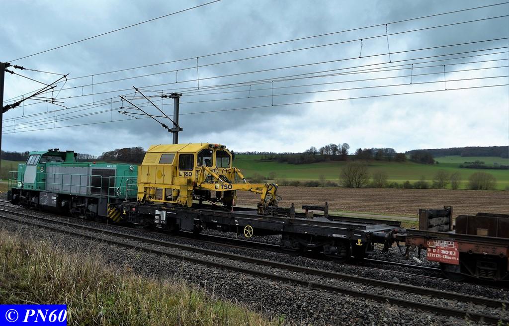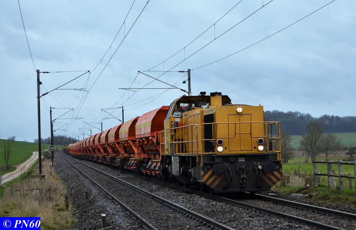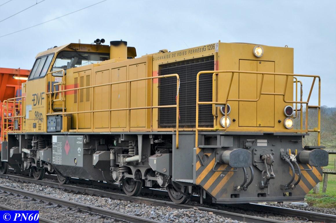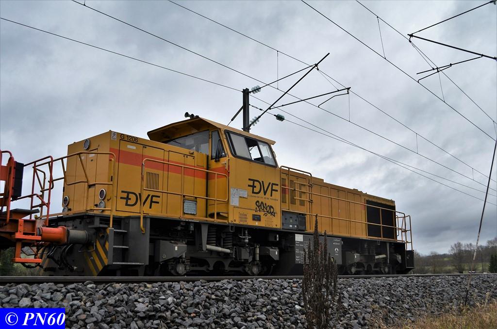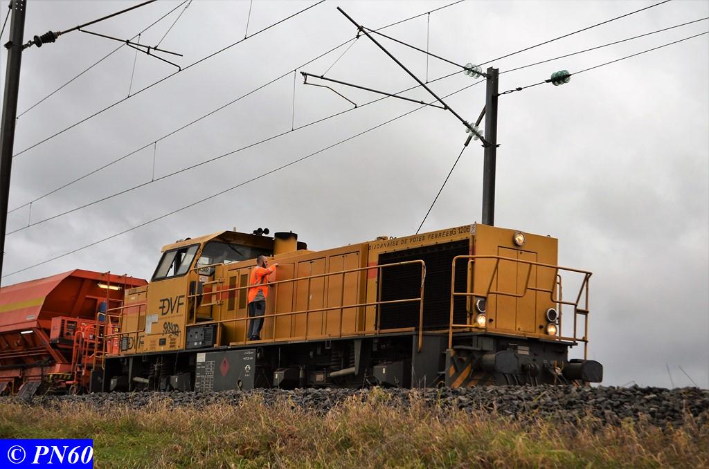 Suite des photos du 24 novembre 2017 et du train de ballast tracté par la G.1206 n° 99 87 9 181 520-7 de la Dijonnaise de Voies Ferrées et poussé par la G.1206 n° 92 80 1275822-5D propriété du loueur Alpha Trains apparemment.