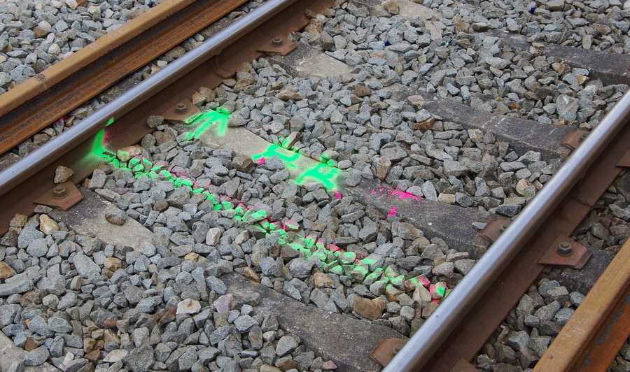 à Flavy-le-Martel (02) PK 67 + ou - avec la préparation du chantier RVB pour la pause des LRS entre le 9 avril et le 13 juillet avec le train-usine, qui traitera les 67 km de la voie 2