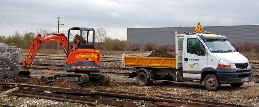 véhicules Scherpereel Travaux Publics sur la base de travaux Meccoli à Chaules le 03-04-2018
