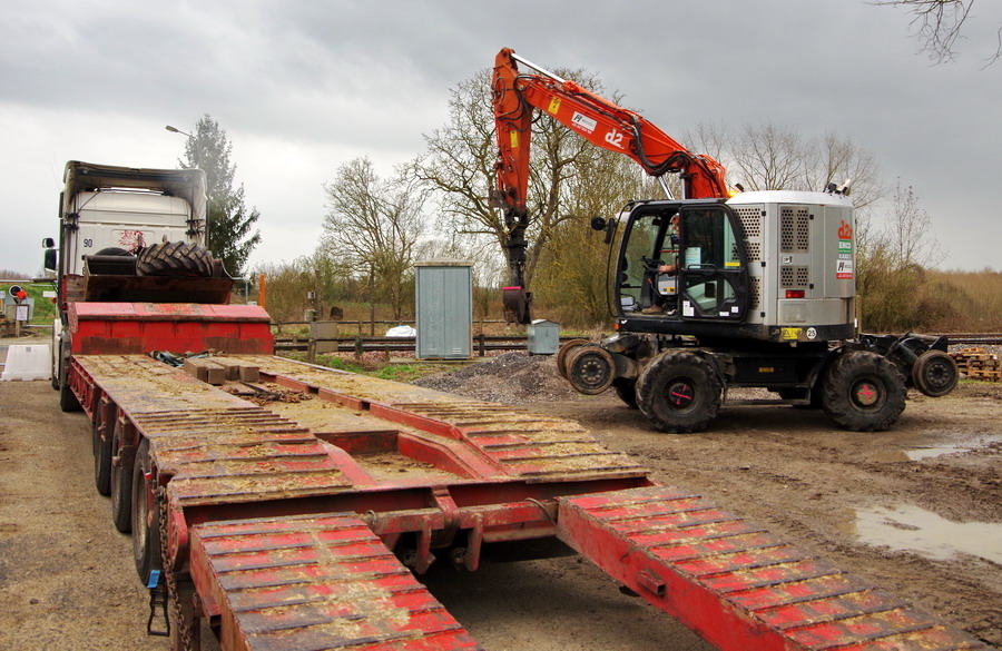 deux Pelles Rail route Hitachi D2R d'ENCO au PN n°32 de Rouy-le-Petit le 05-04-2018