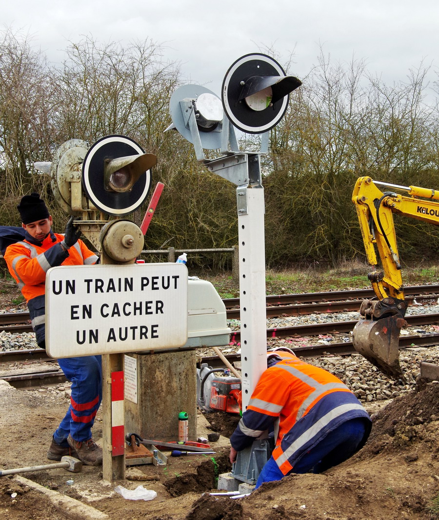 travaux pour la signalisation au PN n°32 à Rouy-le-Petit le 05-04-2018