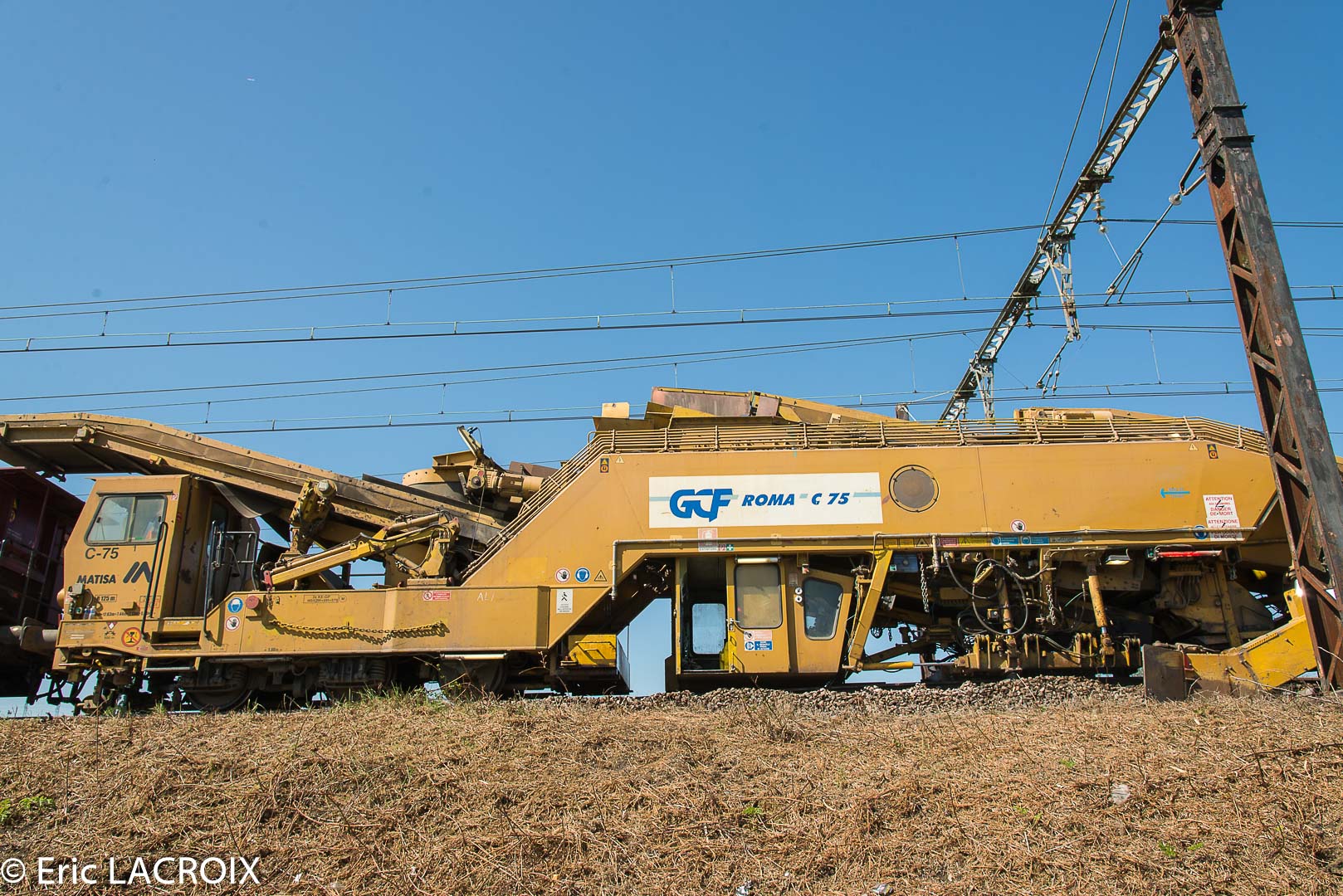 - Dégarnisseuse Cribleuse Matisa C-75 - 99 87 9 314 507-4 GCF Roma sur le RVB voie 1 bis à Courtois sur Yonne (89) en avril 2017.