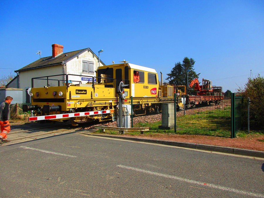 EMV 93 n° 99 87 9 228 019-5 SNCF-LM en plein travail au niveau du PN n°52 de Courcay Tauxigny le 28-03-2019