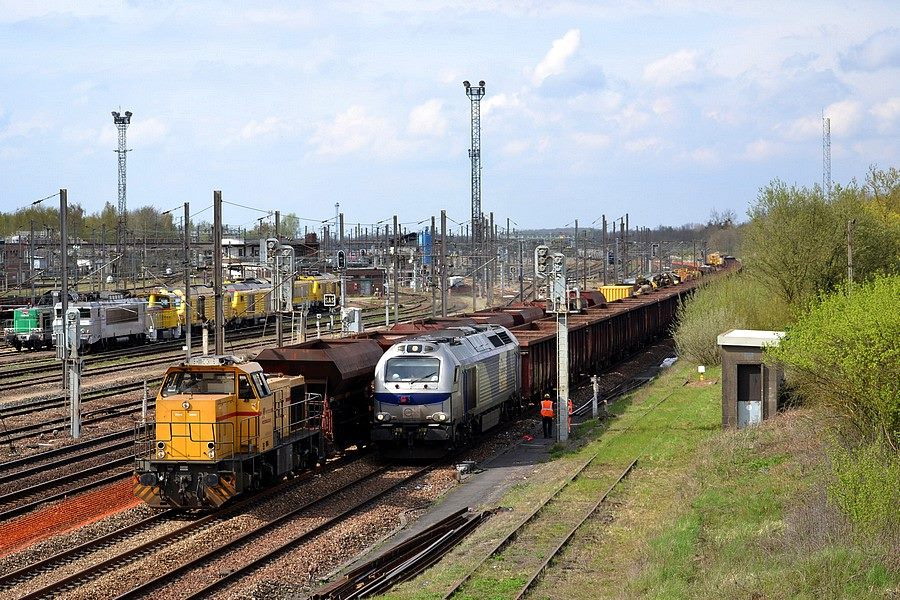 et la 75044 - 92 87 0075 044-3 F-AKIEM en location de retour en queue de la Dégarnisseuse RM95 800 Meccoli sur la base de travaux de Laon le 23-04-2018