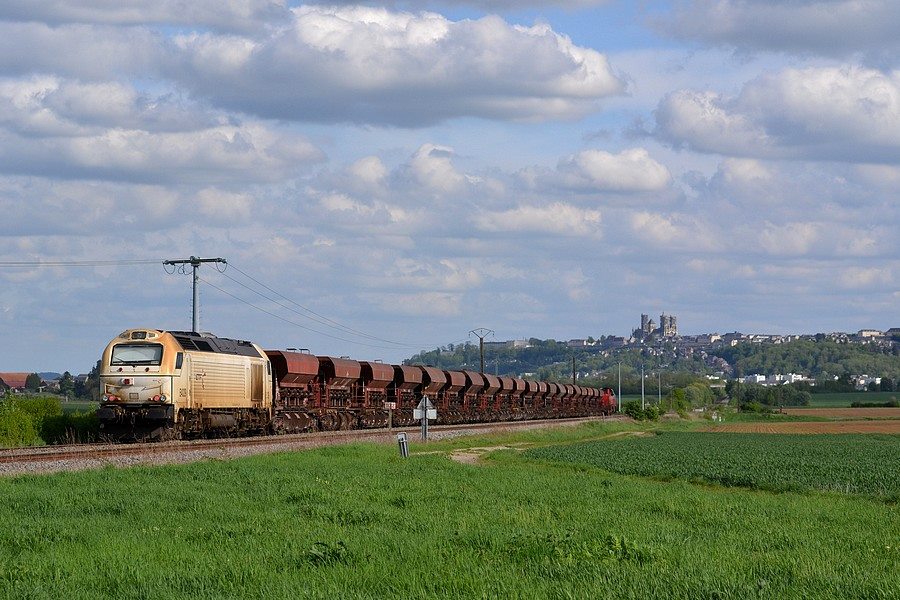 et une rame de wagons Trémies D12 à Laon le 24-04-2018