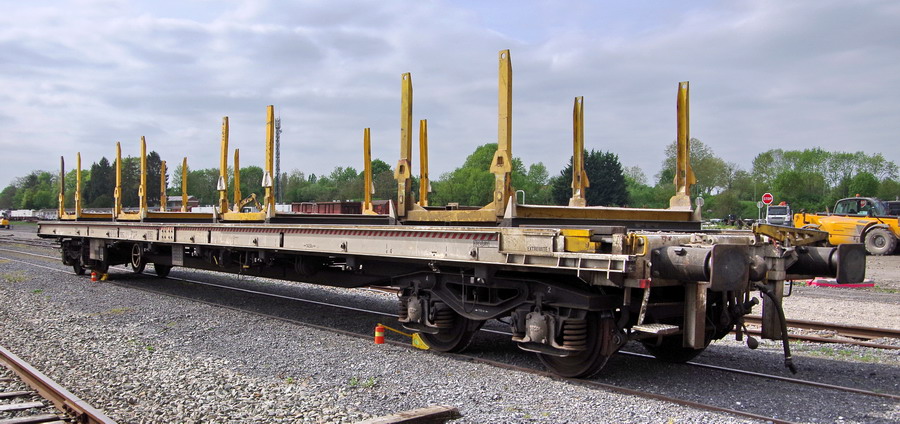 avec quelques photos de ce jour avec le wagon plat à bogies pour le Transport de traverses conditionnées