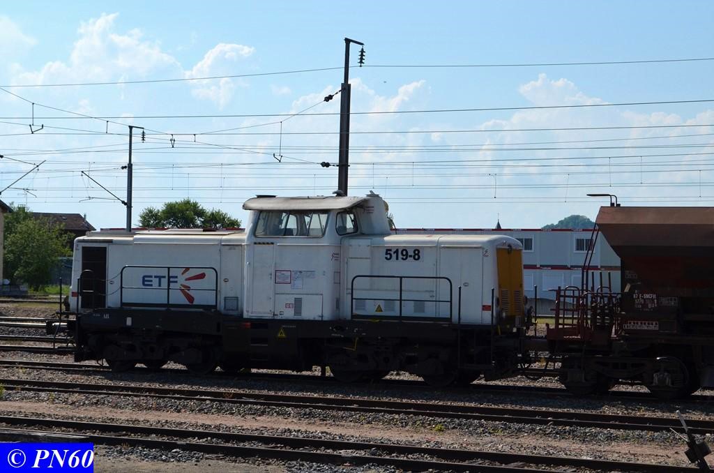 Le 27 mai 2017, la V.211 99 87 9 182 519-8 d'ETF et son train de chantier est stationnée sur une voie de la gare de MERREY (52).