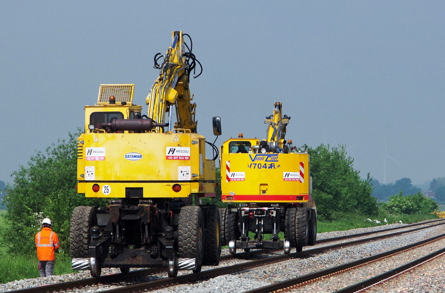 les deux Pelles Rail route VaiCar et Geismar de Meccoli sur la voie 2 entre les PN n°46 et 47 à Jussy le 16-06-2018