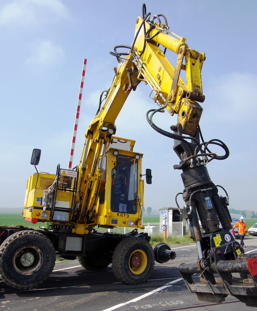 mise en place pour enrayage de la Pelle Rail route Geismar KGT-V n°4717 Meccoli 9 (RR10)