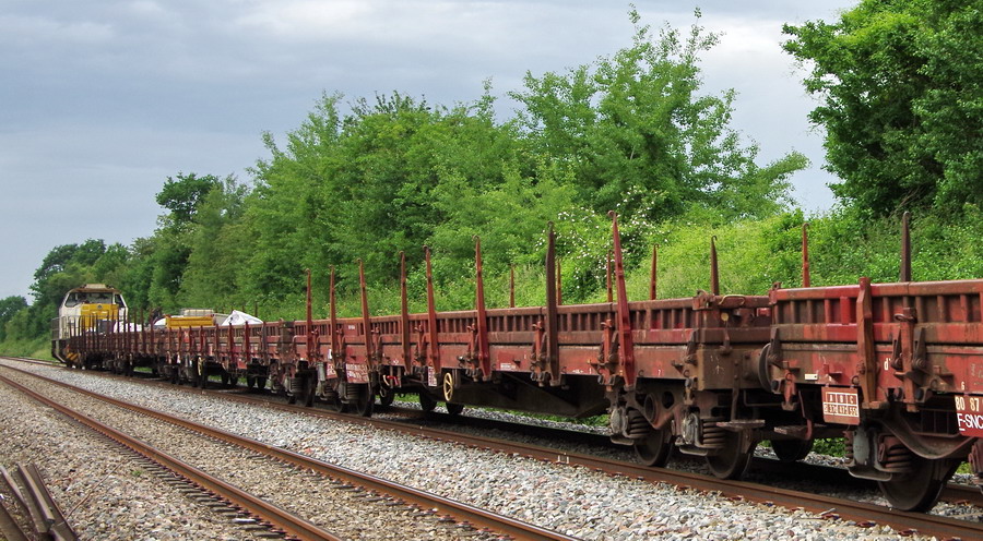 - 99 87 9 383 629-2 K50 Meccoli (porte citernes jaune) sur le train n°DK2 en gare de Chaulnes le 30-05-2018